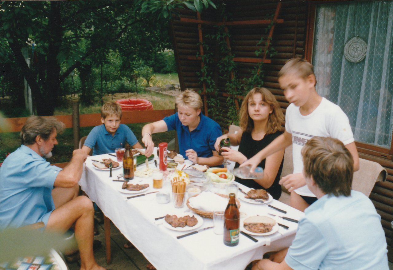 kürzlich habe ich bei meinen Eltern ein altes Fotoalbum meiner Großeltern entdeckt. Mein Papa war so lieb, uns die Bilder zu digitalisieren. Die Bilder stammen vermutlich hauptsächlich aus dem Nachwendesommer 1990. Nicht nur ich sehe auf den Bildern noch ganz putzig aus. Auch Victors große Liebe war damals noch ein kleines Kind. Seht und staunt…